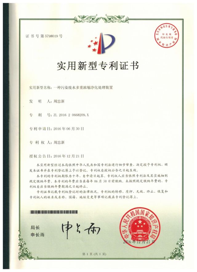 一种污染废水多重浓缩净化处理装置